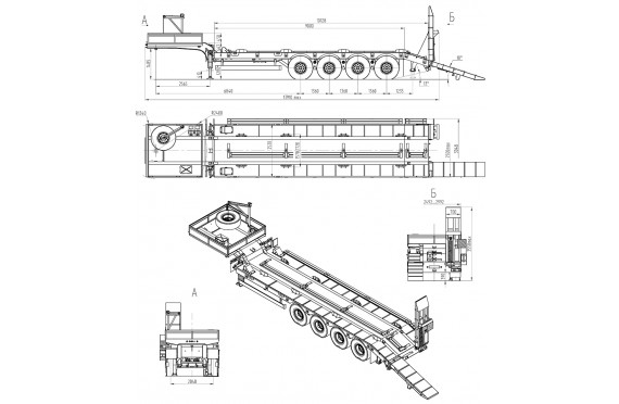 50000 кг, шины 385/65R22,5 или 445/65R22,5/ 6+1, присавные алюминиевые трапы, платформа 12200 мм, ССУ 1450 мм, пневматическая подвеска, раздвижные коники 1500 мм, съемные борта или без них, в ГАБАРИТЕ по ДЛИНЕ АВТОПОЕЗДА с КАМАЗ 6x6