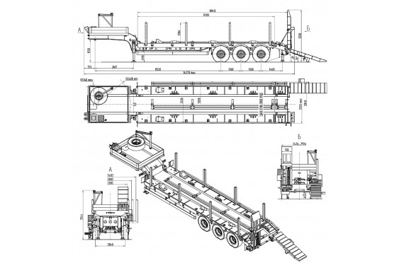 41200 кг, шины 395/85R20 или 445/65R22,5 / 6+1, платформа 9280 (10142 до трапов) x 2530 с уширителями до 3030 мм, ССУ 1550 мм, рессорная или пневматическая подвеска, раздвижные коники