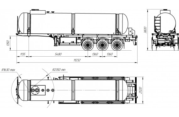 Материал: химстойкое стекловолокно, емкость: 20 куб.м., сечение: эллипсное, конструкция: однослойная или трехслойная (волокно, утеплитель, волокно), крепление: при помощи стяжных лент, перевозимые жидкости: кислоты/едкие вещества/нефть/техвода/щелочные и солевые растворы, автошины 425/85R21